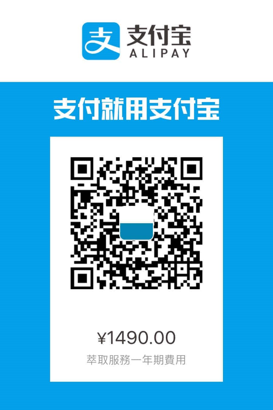 請掃描以下支付寶二維碼直接支付 AUTOF萃取服務 一年期費用。
